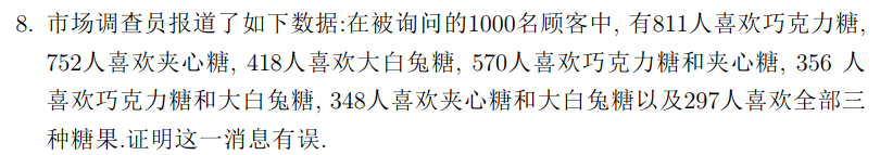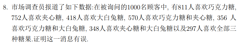 venn 图,找出所有的不相容种类,算出来 1156 人,超了