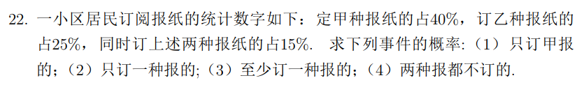 22:计算报纸订阅的多种概率(Venn 图应用)。