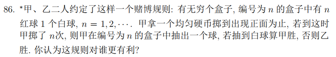 这更像思维题,显然第一次出正是等可能的,考虑到后续的可能性一定是乙更容易胜,所以对乙更有利。